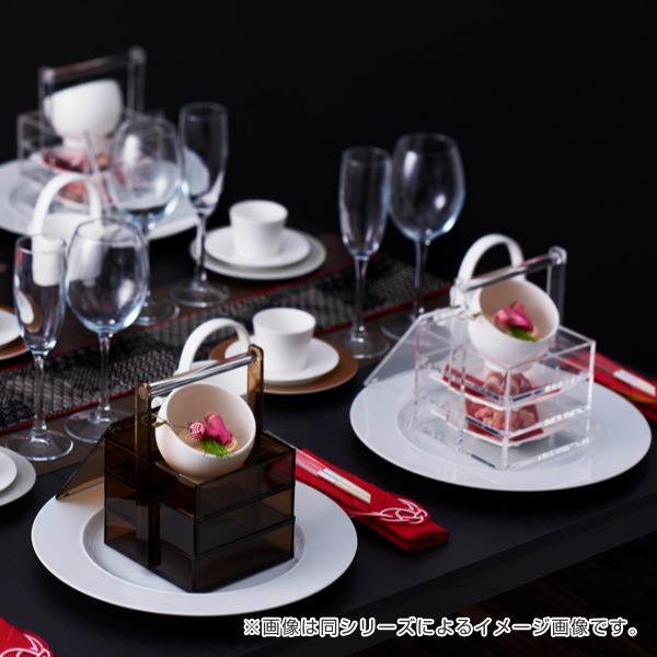 料理を盛り付ける際に使うお重です。料理を華やかにみせ、まるでレストランにいるようなテーブルコーディネートを演出できます。特別な日のお祝いや来客の際におすすめです。主張しないクリアタイプなので、ありのままの料理の良さを引き立てます。