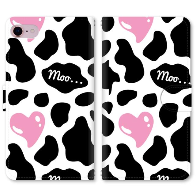 スマホケース 手帳型 iPhone13 iPhoneSE2 アイフォン 8 aquos sense GooglePixel xperia galaxyなど多機種制作対応 m3366_牛柄 ハート