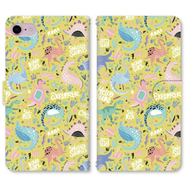 スマホケース 手帳型 iPhone13 iPhoneSE2 アイフォン 8 aquos sense GooglePixel xperia galaxyなど多機種制作対応 m3382_恐竜 イエロー