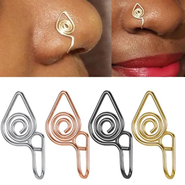 涙型ティアードロップのデザインのステンレス製の鼻用のノーズフェイクピアス。