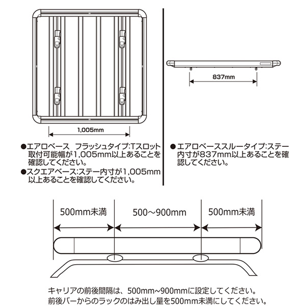 ●ベースキャリアは、スクエアベースとエアロベースのどちらにも対応。