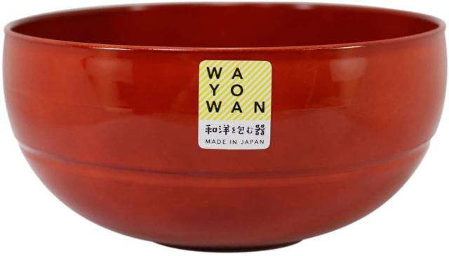 ●和食も洋食も引き立てる器WAYОWANまる朱丼●和食でも洋食でも、どんな料理にも合う器。家族みんなの手になじむまるみのある形。●同じサイズならセンターラインでスタッキングでき、違うサイズなら入れ子状にスッキリ収納できる。●食洗機・電子レンジ使用可能。商品詳細カラー 朱JANコード 4901029126510サイズ (約)直径15×高さ7.2cm材質 飽和ポリエステル樹脂(ウレタン塗装)