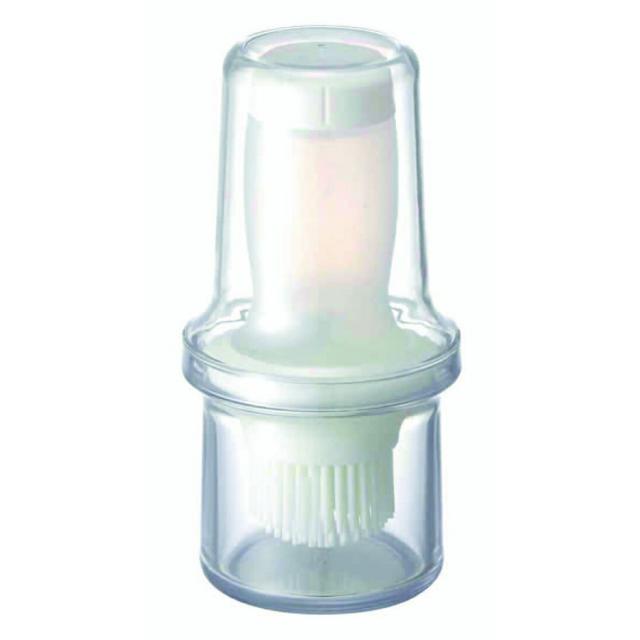 ワンプッシュで適量、シリコンハケ付き油引きサイズ D66×W66×H128mmカラー ホワイト材質 全体フタ・油受け容器=AS樹脂キャップ=PP、タンク容器=PEハケ・パッキン=シリコーンゴム