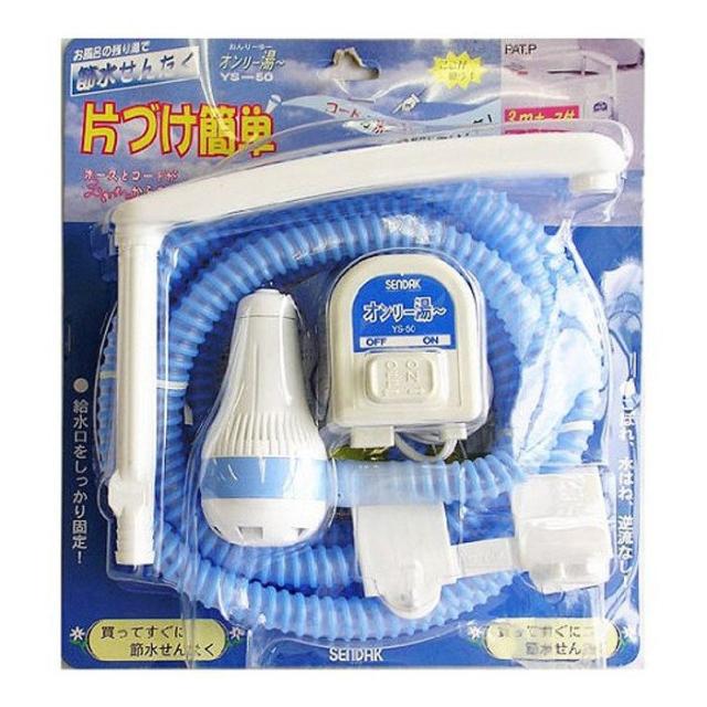お風呂の残り湯で節水せんたくお風呂の残り湯で節水せんたく 「オンリー湯〜」。コード内蔵ホースなので、絡みにくいです。こぼれ、水はね、逆流しにくい。商品仕様:・メーカー:センタック・JANコード:4905390020323・商品名:バスポンプ お風呂 ポンプ 風呂 残り 湯 洗濯 風呂水 汲み上げ 節水 エコ コード内蔵型 オンリー湯〜・型番:YS-50・吐出量:9.5リットル/揚程0m、8リットル/揚程1m・最大揚程:2・電源コードの長さ:1m・ポンプコードの長さ:3m※台紙には3.4mアーム+ホース付で表記・付属品:アーム、ベース・個装サイズ:幅275×縦300×高さ80mm・本体重量:約850g・素材・材質:電源器・ポンプ・ベース/ポリプロピレン、アーム/ポリエチレン、電源コード/ポリ塩化ビニル、ホース/EVA・原産国:中国・入力:AC100V 50Hz-60Hz・出力:DC8V 0.8A・使用可能温度範囲:周囲温度 5〜35℃、水温 5〜45℃