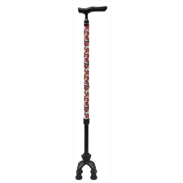 島製作所 アルミMIX四点可動式スモール BK 4945528078420 介護ステッキ 介護杖 4点杖 花柄