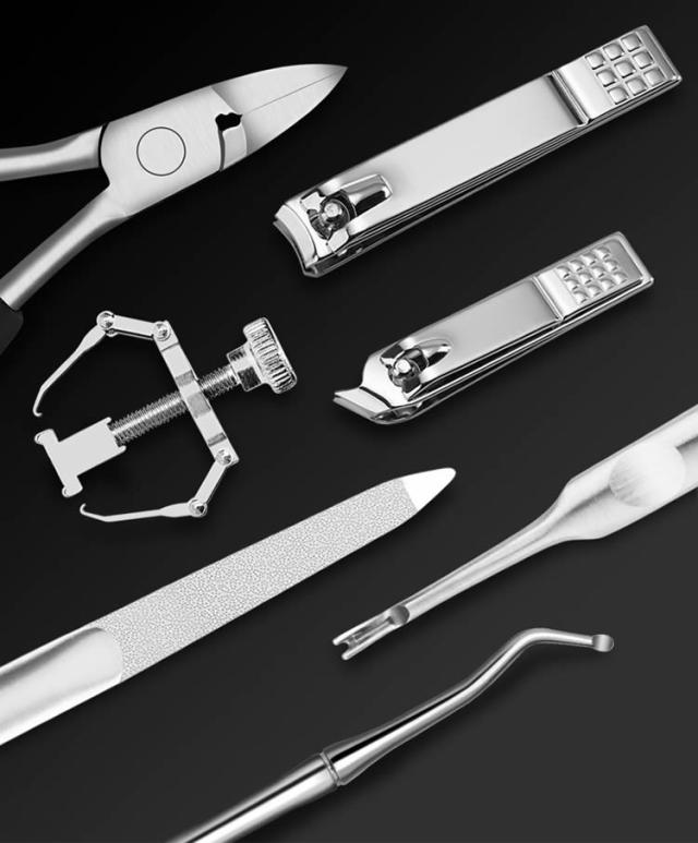 熟練のスペシャリストが丹念に仕上げた逸品のステンレス製爪切り、爪ヤスリとゾンデのセットです。