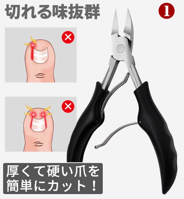 切れ味抜群のニッパー式ツメキリ、巻き爪や甘皮も指を傷つけず簡単に処理できます。