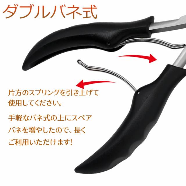 軽なバネ式の上に、スペアバネを増やしたので、従来品より長くご利用いただけるようになりました。熟練のスペシャリストが丹念に仕上げた逸品のステンレス製爪切り、爪ヤスリとゾンデのセットです。