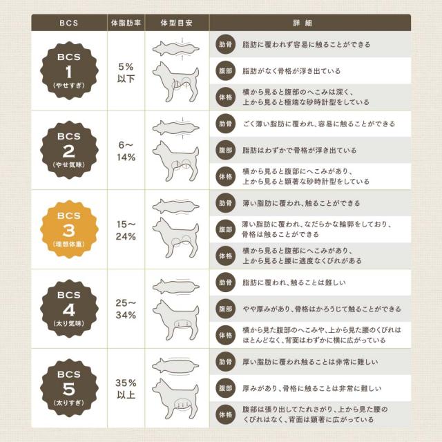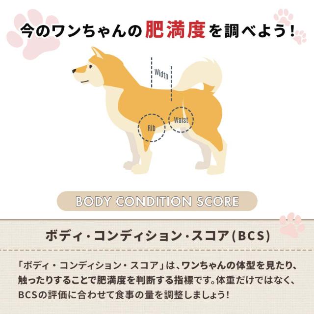 300gタイプは3kgの肥満傾向の成犬で約4日分、1kgタイプは3kgの肥満傾向の成犬で約14日分。