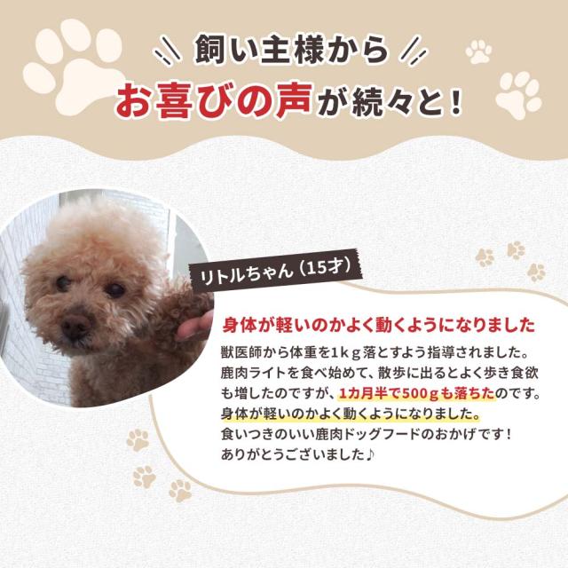ワンちゃんのイキイキとした体づくりを支える、カロリー控えめ、国産無添加、ドライタイプ 鹿肉ライト