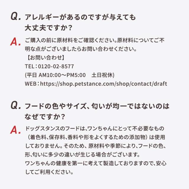 ※着色料、保存料、香料や形を良くするための添加物等を使用しておりません。 そのため季節や原材料により、フードの色・形・匂いに違いが生じる場合がございます。あらかじめご了承ください。