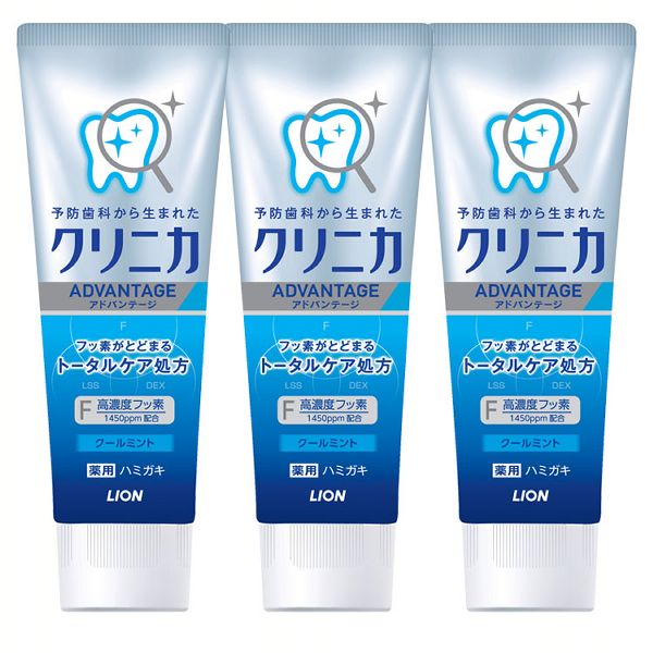 [3個セット]クリニカアドバンテージ ハミガキ クールミント タテ型 130g ライオン クリニカ ハミガキ ムシ歯 高密着フッ素 薬用 歯みがき 口内トラブル LION クールミント まとめ買い