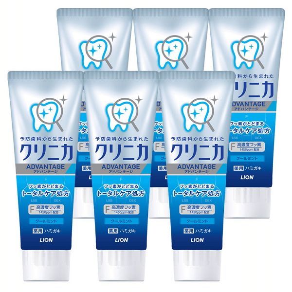 [6個セット]クリニカアドバンテージ ハミガキ クールミント タテ型 130g ライオン クリニカ ハミガキ ムシ歯 高密着フッ素 薬用 歯みがき 口内トラブル LION クールミント まとめ買い