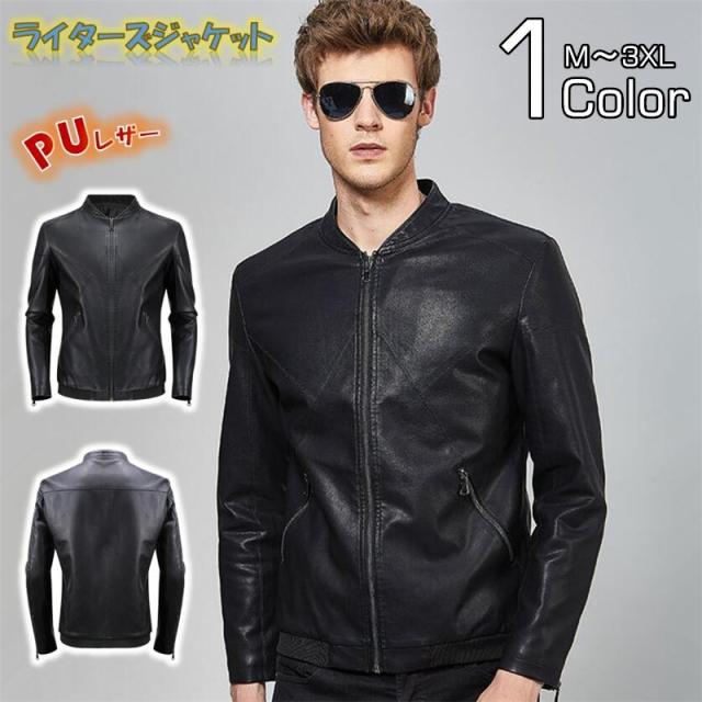 レザージャケット メンズ 革ジャン ライダースジャケット PUレザー PU革 バイクジャケット レザーブルゾン 革ジャケット フルジップ スリムフィット 保温 防風