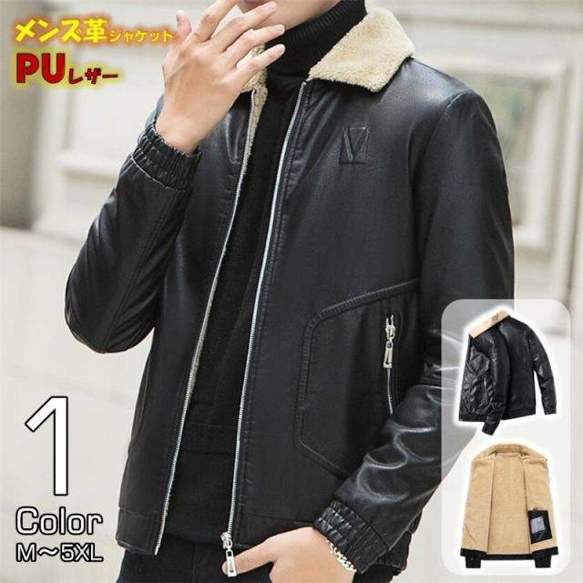 革ジャン メンズ レザージャケット ブルゾン PUレザー PU革 裏ボア付き 秋冬 細身 アウター ライダースジャケット 紳士服 無地 カジュアル バイク 保温 防風