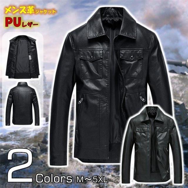 レザージャケット メンズ ミリタリージャケット ワークジャケット PUレザー PU革 レザーウェア 革ジャン 革ジャケット メンズ スリムフィット 無地 保温 防風