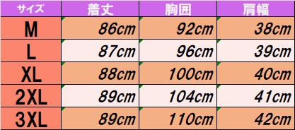 | サイズ | M L XL 2XL 3XL |