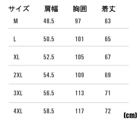 | サイズ | M L XL 2XL 3XL 4XL |
