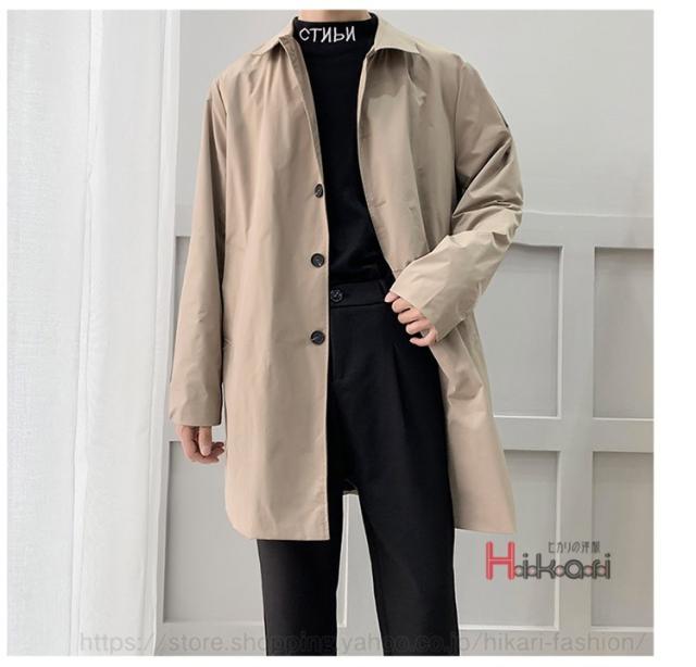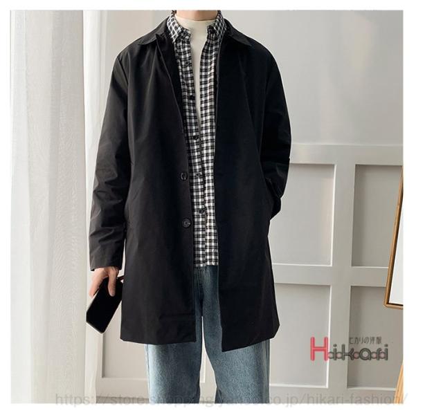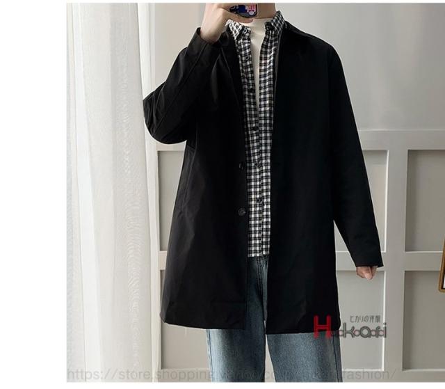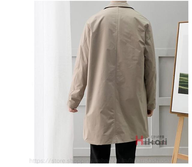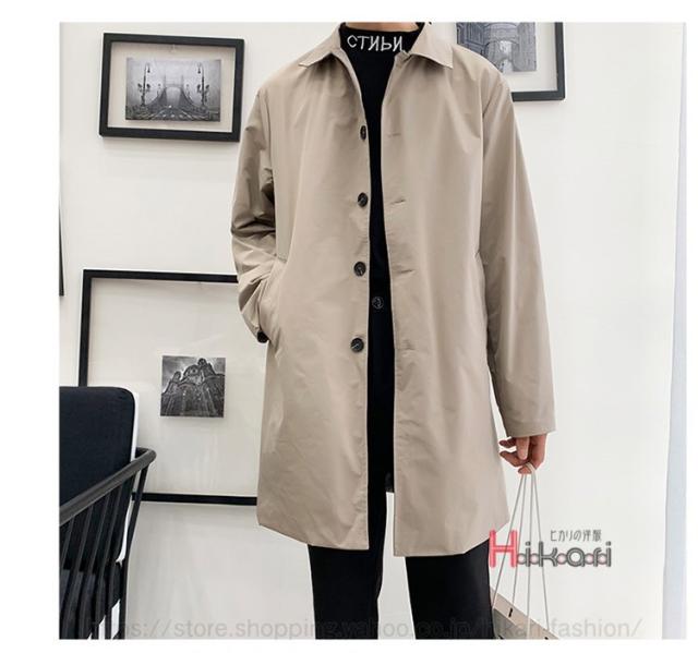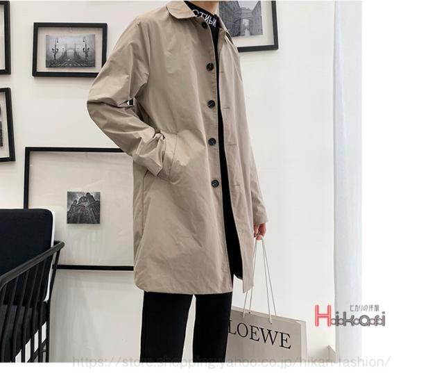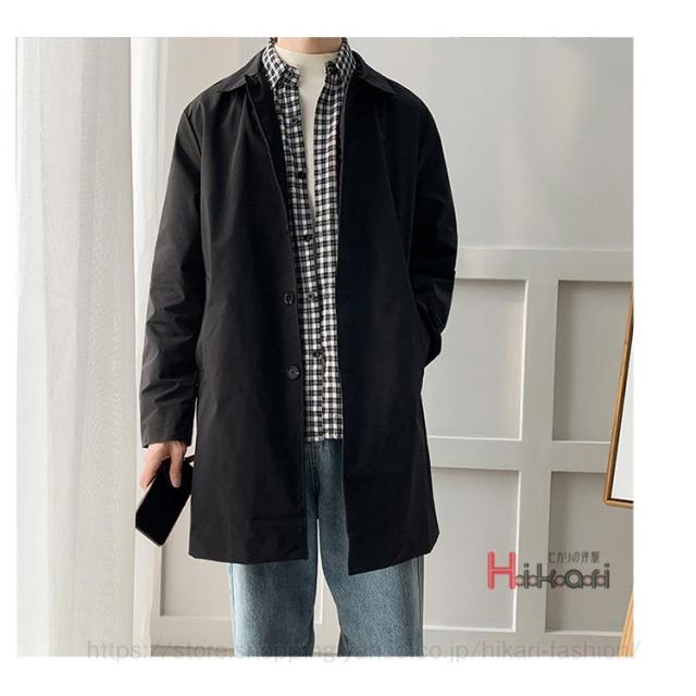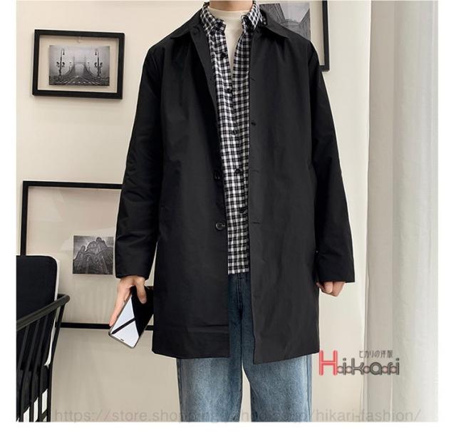 ステンカラーコート メンズ ビジネス スプリングコート 無地 ハーフコート アウター おしゃれ 黒 ベージュ