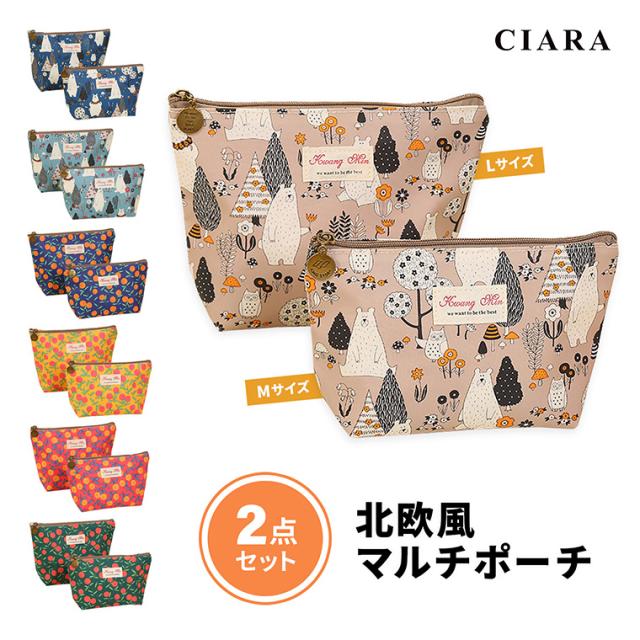 送料無料 選べるデザインの北欧風マルチポーチ 2点セット