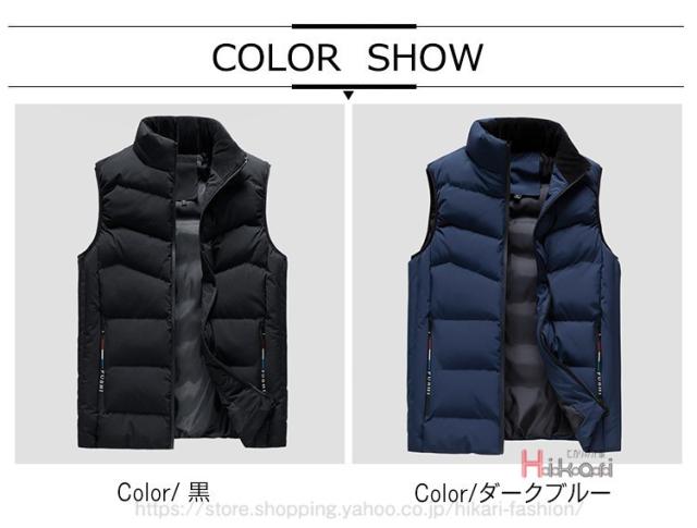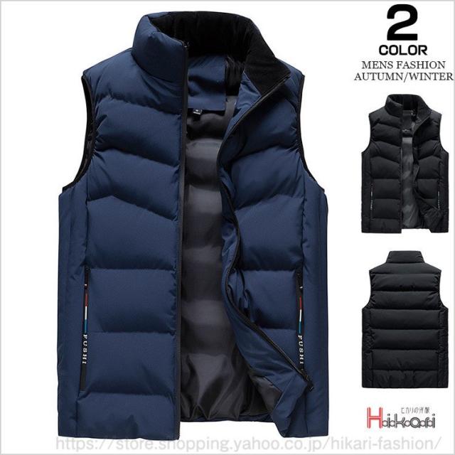 中綿ベスト メンズ ベスト キルティング スタンドカラー 厚手 防寒着 チョッキ ダウンベスト 無地 黒 ダークブルー