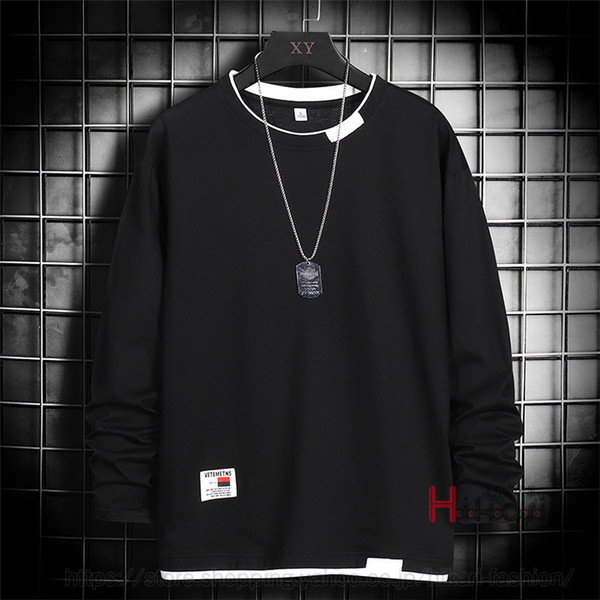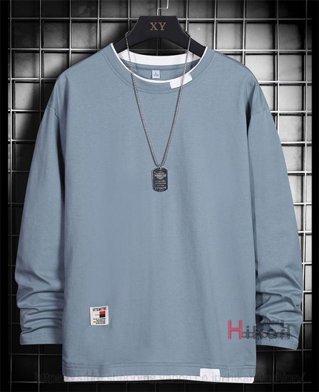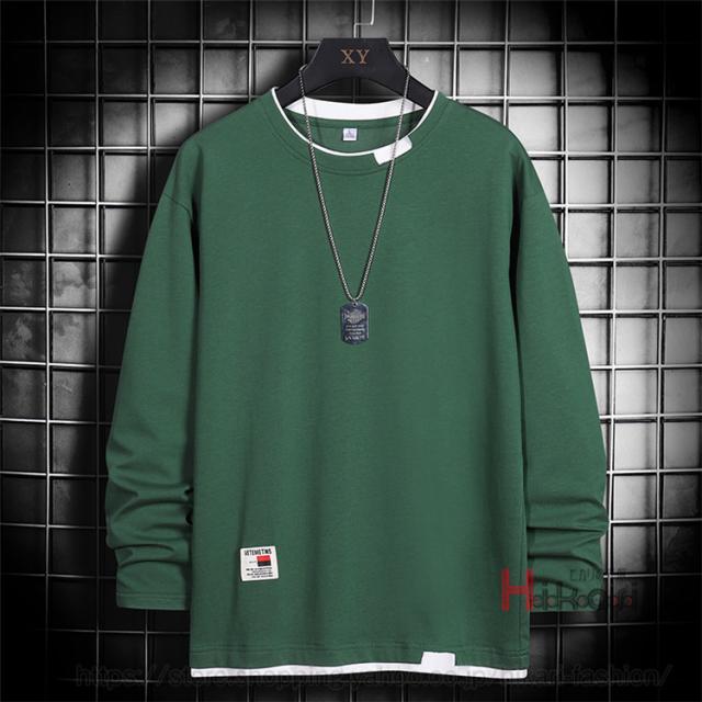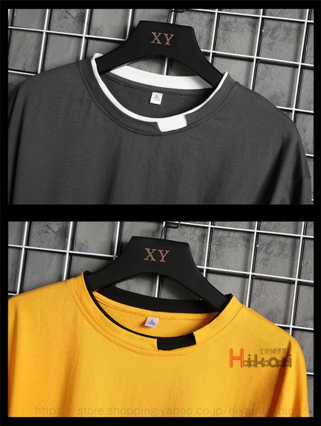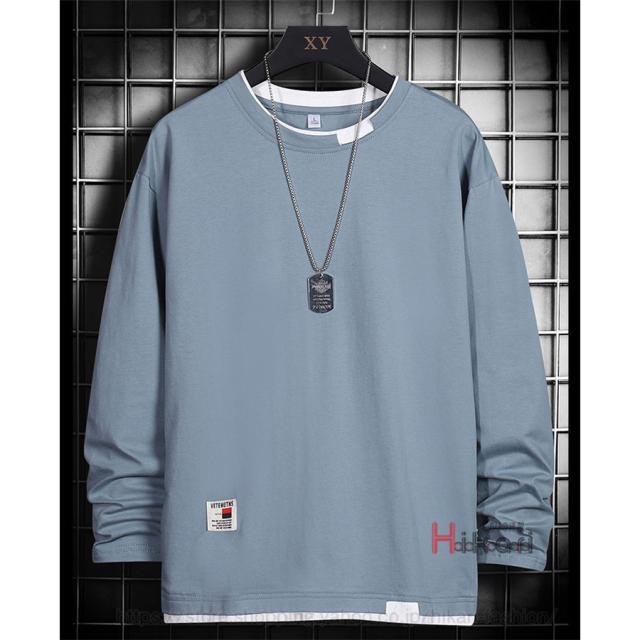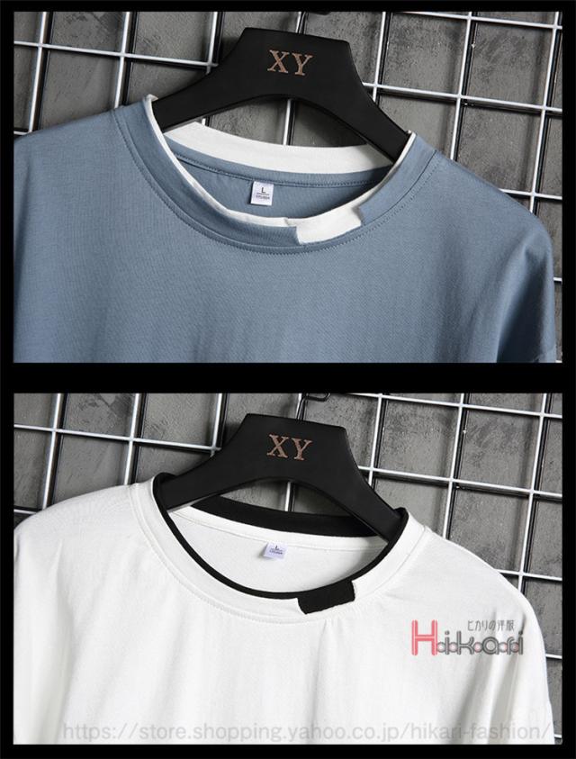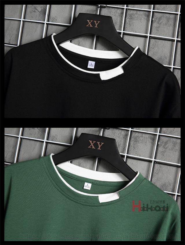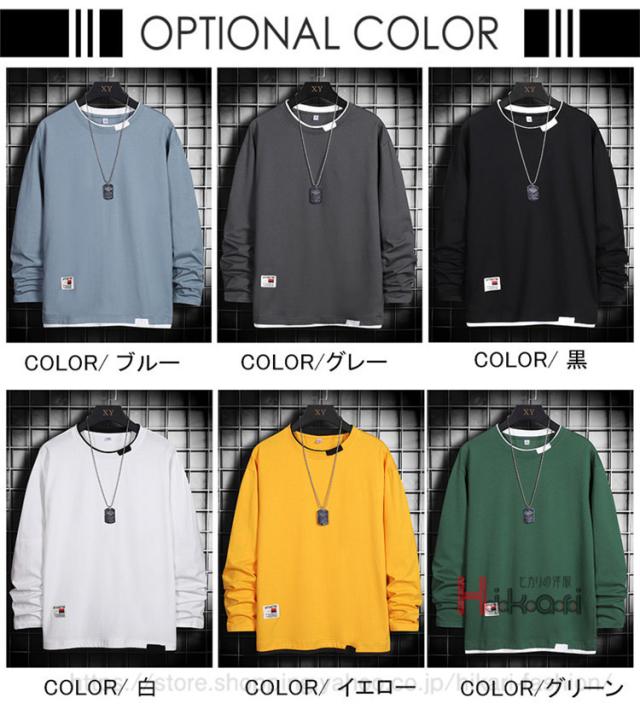 Tシャツ メンズ ロングTシャツ 長袖 ロンT クルーネック トップス ティーシャツ 重ね着風 長袖Tシャツ 白Tシャツ