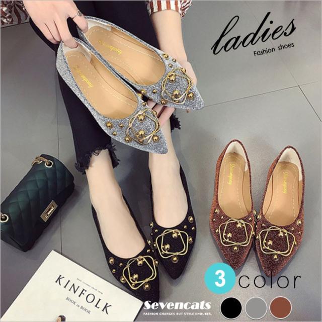 パンプス レディース フラットヒール シューズ ローカット カジュアル ポインテッドトゥ ローファー 靴