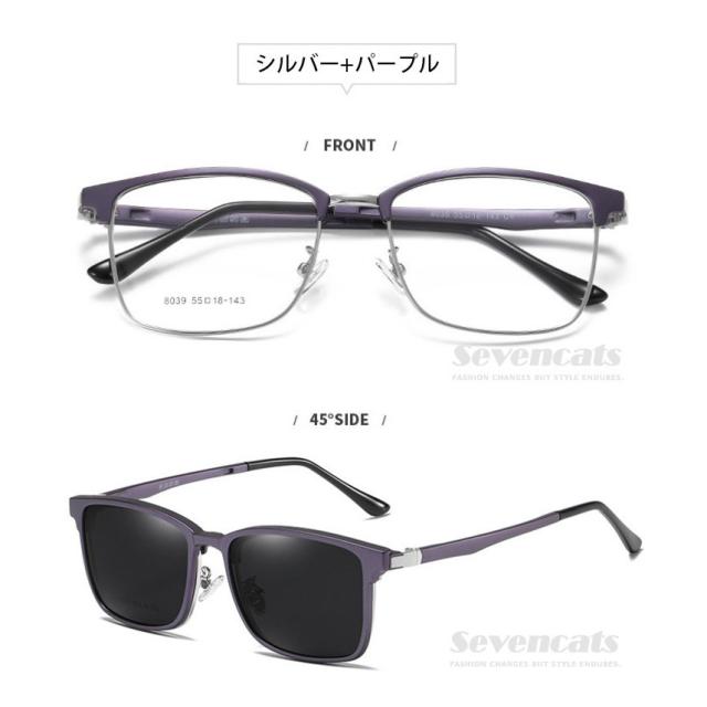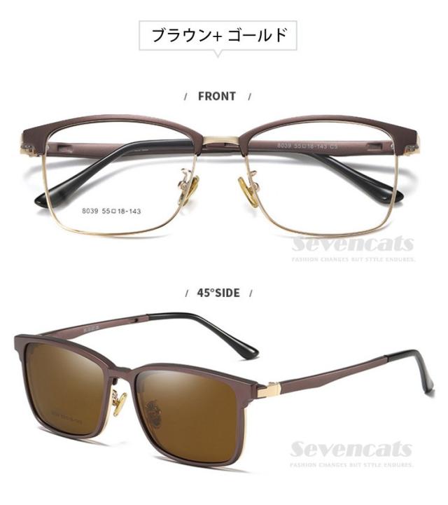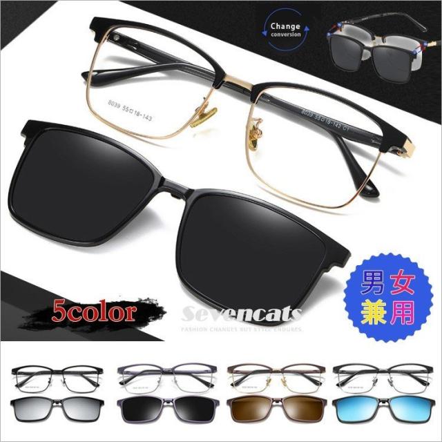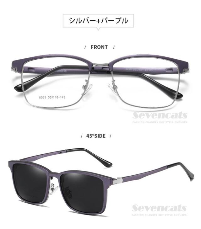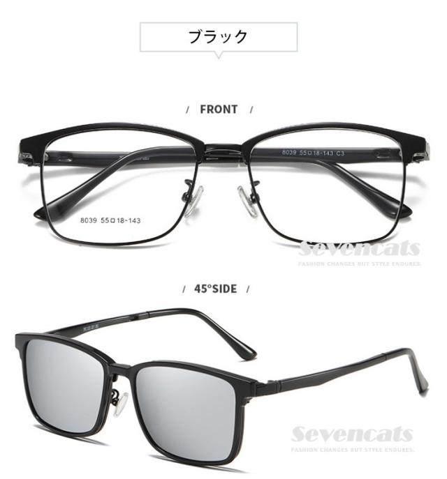伊達メガネ メンズ 度なし UVカット 偏光 サングラス 磁石 サーモント型 レトロ メンズ/レディース兼用