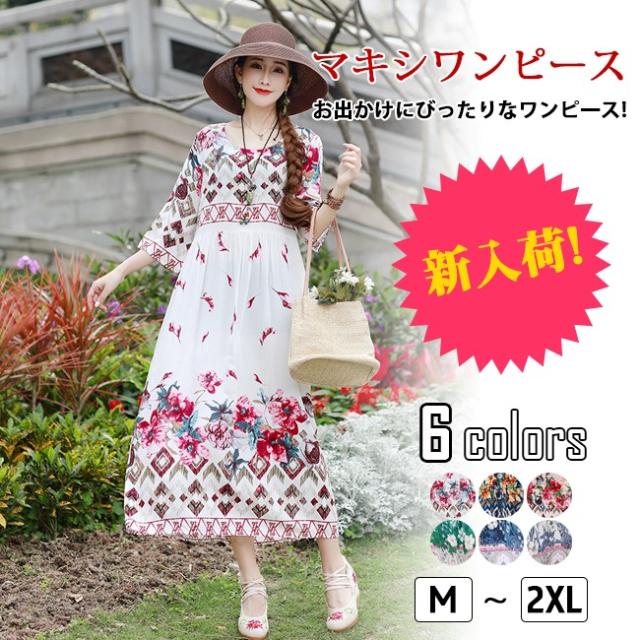 マキシワンピース 無地 大きいサイズあり ロング マキシ丈 aライン リゾート レディース ボヘミアン