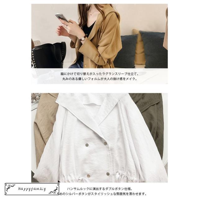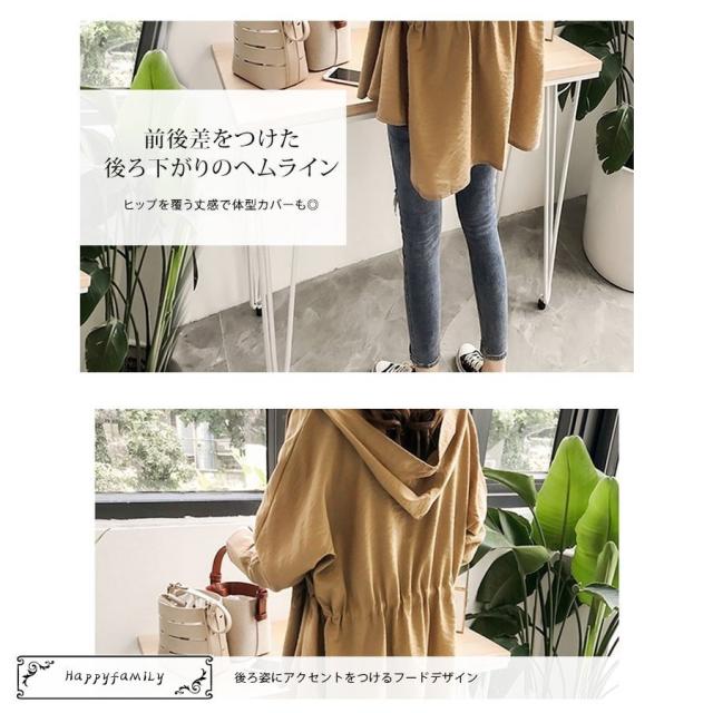 フードジャケット コート 春 夏 シャツ 羽織り ラグランコート ドロスト ウエスト紐付き シンプル レディース アウター 大人 可愛い//8//