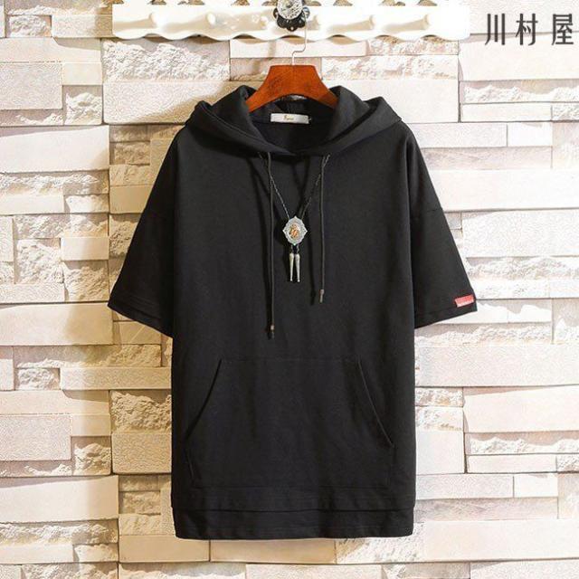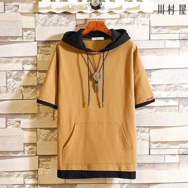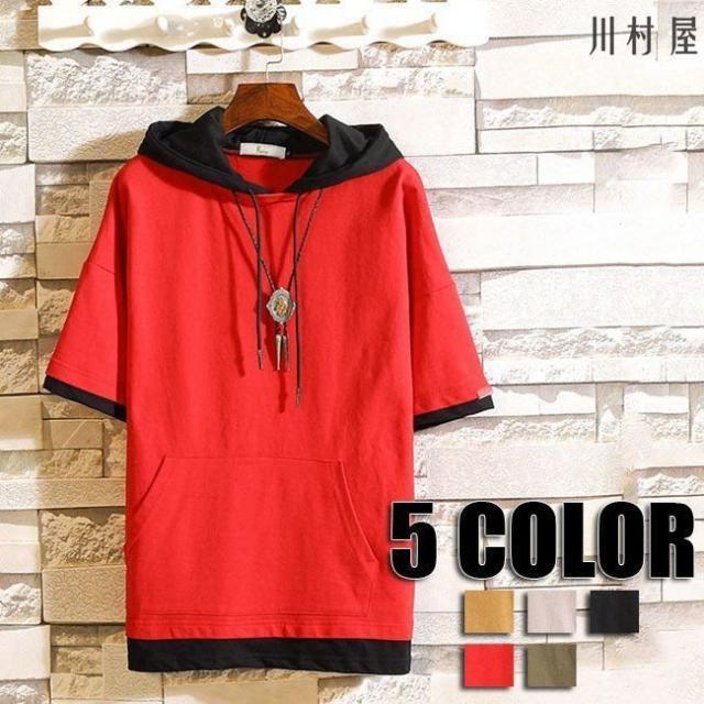 フード付きTシャツ メンズ 半袖 コットン Tシャツ 大きいサイズ カジュアルTシャツ メンズ フード付き メンズファッション 5色