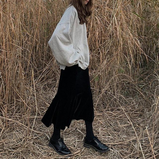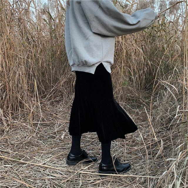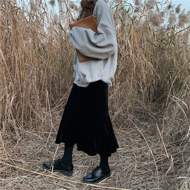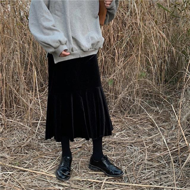 ベロア タイトスカート レディース 秋冬 スカート マーメイド 黒 韓国 メール便