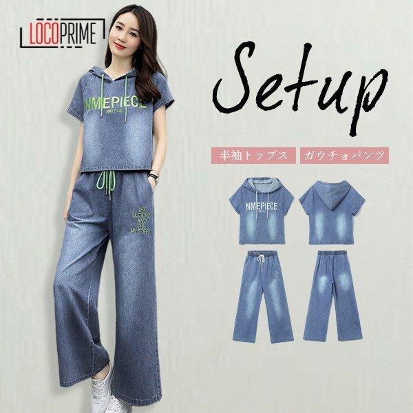 セットアップ レディース 上下セット 夏 薄手 上下セット ルームウェア デニム パーカー ガウチョパンツ 着痩せ きれいめ 夏 大きいサイズ カジュアル おしゃれ