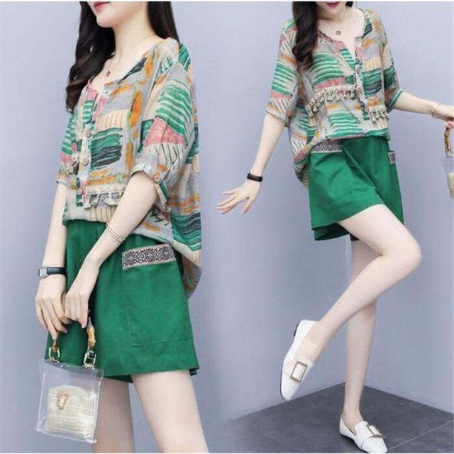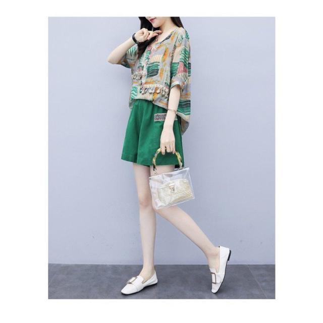 セットアップ レディース 夏 カジュアル 40代 20代 おしゃれ 上下セット ブラウス 半袖 ガウチョパンツ ショートパンツ 大きいサイズ 韓国風 着痩せ 通勤 新品