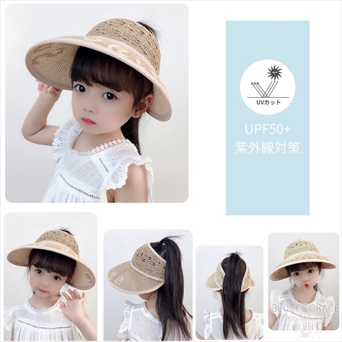 子供用 キッズ 帽子 サンバイザー UVカット 日除け 夏 プール 海 行楽 紫外線対策 熱中症対策