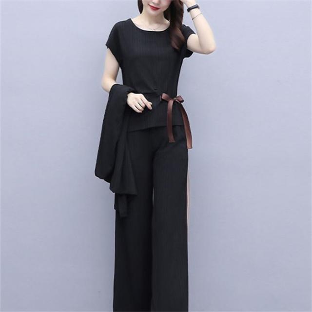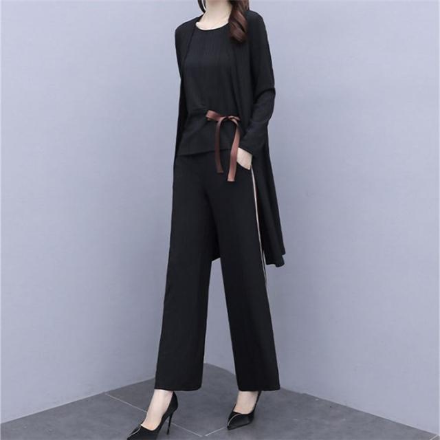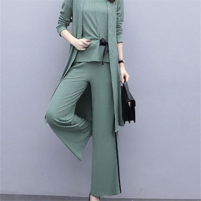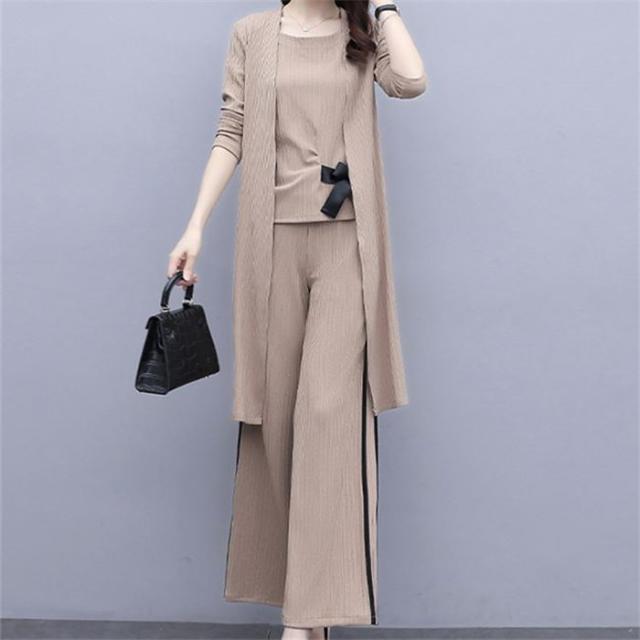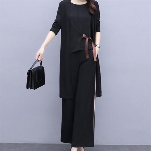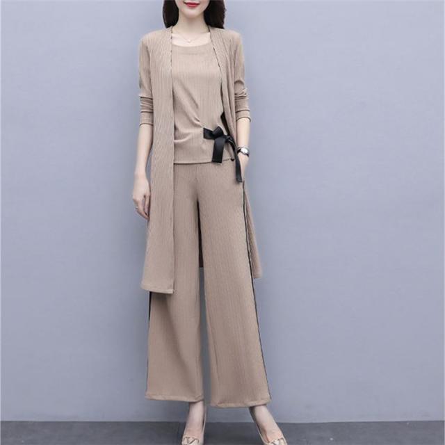 3点セットアップ セットアップ レディース tシャツ+カーディガン+ワイドパンツ 無地 丸首 カジュアル 体型カバー シンプル 着痩せ ゆったり 20代 30代 40代