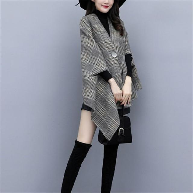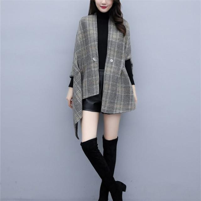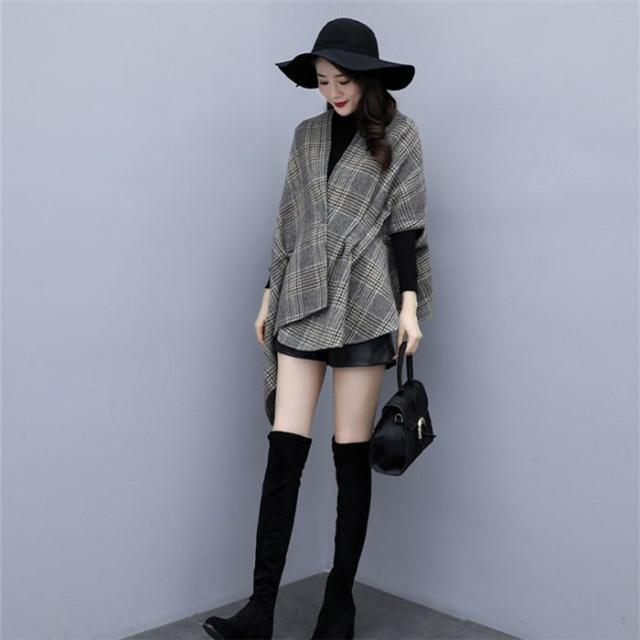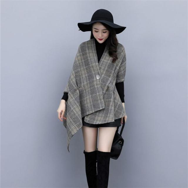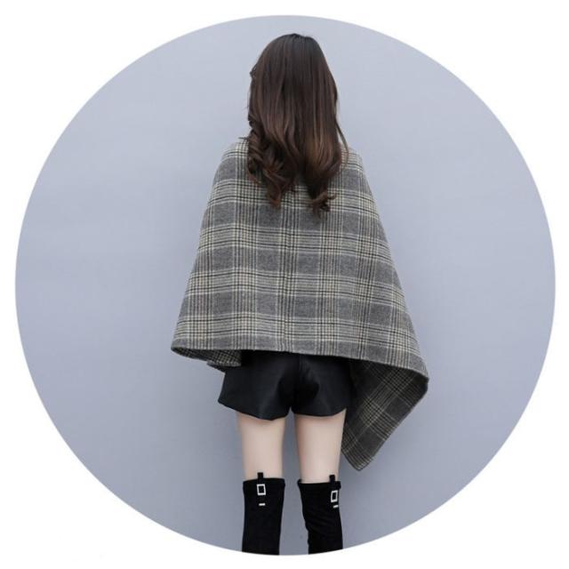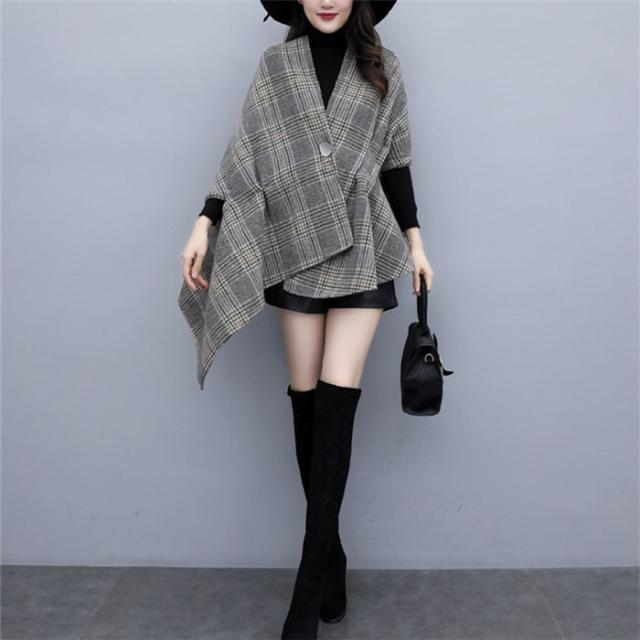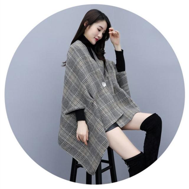 マントコート ラシャコート レディース チェック柄 不規則 マント ポンチョ ケープ コート アウター 羽織り 大きいサイズ ひとつボタン 厚手 秋冬 お出かけ