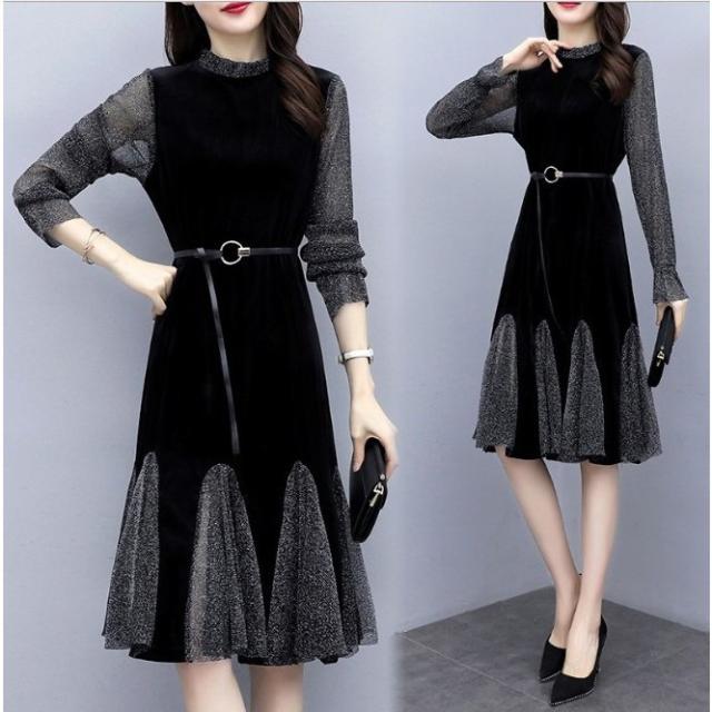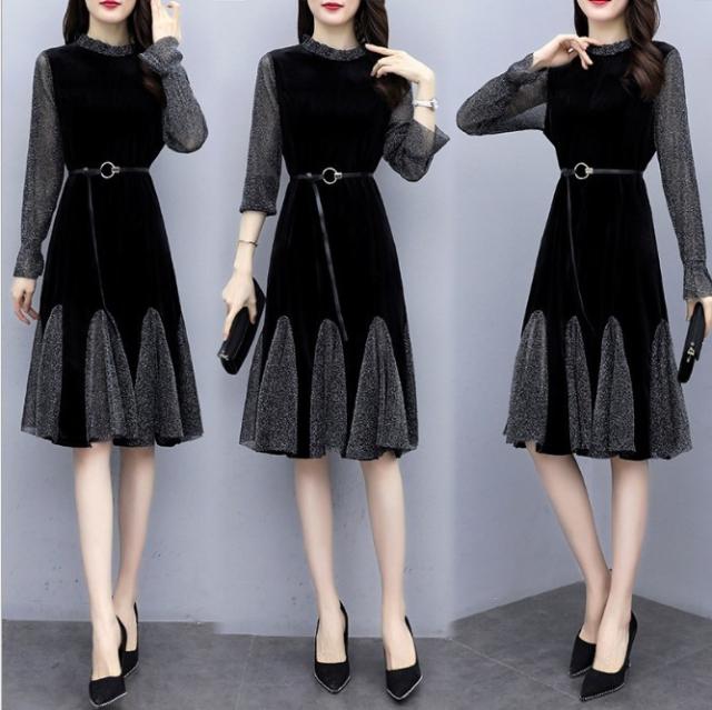 ワンピース レディース きれいめ フォーマルワンピース 結婚式 ドレス レースワンピース 長袖 Aラインワンピース パーティードレス 上品 ママワンピース 40代