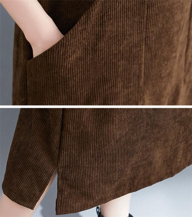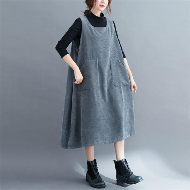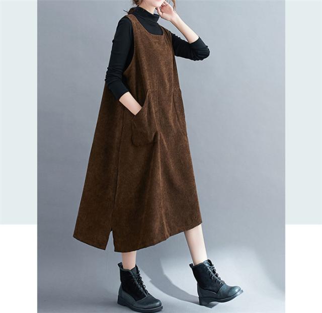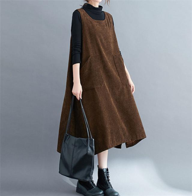 ロングジャンパースカート レディース aライン 30代 40代 ノースリーブワンピース 無地 重ね着 コーデュロイ ナチュラル スリット カジュアル 大人 通勤