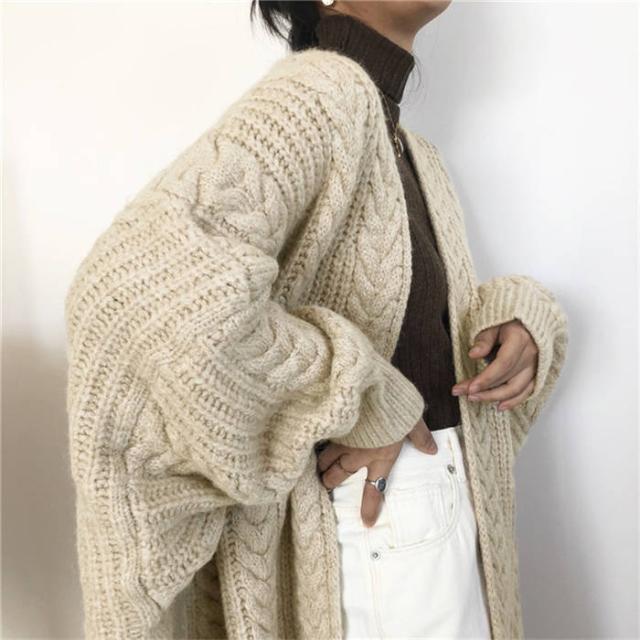 ニットカーディガン ロングカーディガン レディース ドルマンスリーブ ケーブル編み セーター コート 羽織 秋 冬 防寒 厚手 無地 大きいサイズ 体型カバー