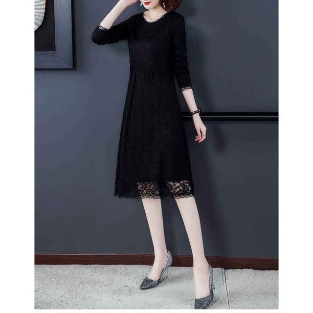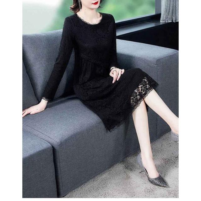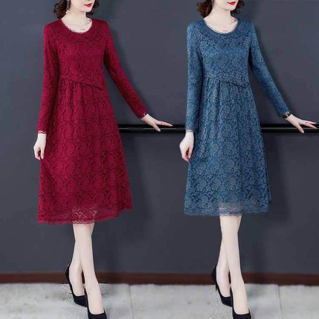 ワンピース レディース 冬 40代 裏起毛 きれいめ 長袖 レースワンピース 上品 大きいサイズ パーティードレス おしゃれ 暖かい 韓国風 着痩せ OL 新品
