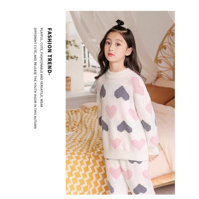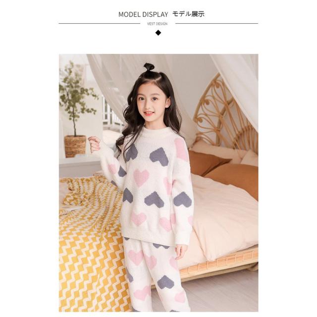 パジャマ キッズ 韓国子供服 女の子 冬 ルームウェア 厚手 パジャマ モコモコ 可愛い 長袖 ハート柄 フランネル セットアップ 部屋着 柔らかい 防寒着 秋冬