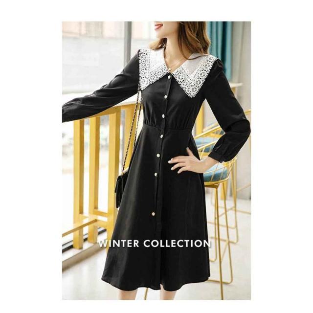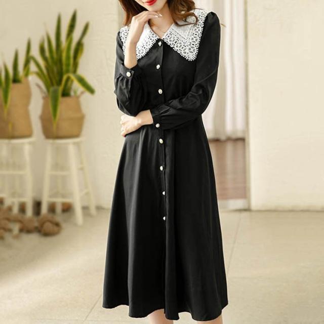 ワンピース レディース 40代 20代 春秋 長袖 きれいめ 上品 マキシワンピース 折り襟 コーデ 大きいサイズ パーティードレス おしゃれ 韓国風 着痩せ 通勤 OL