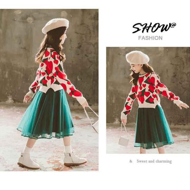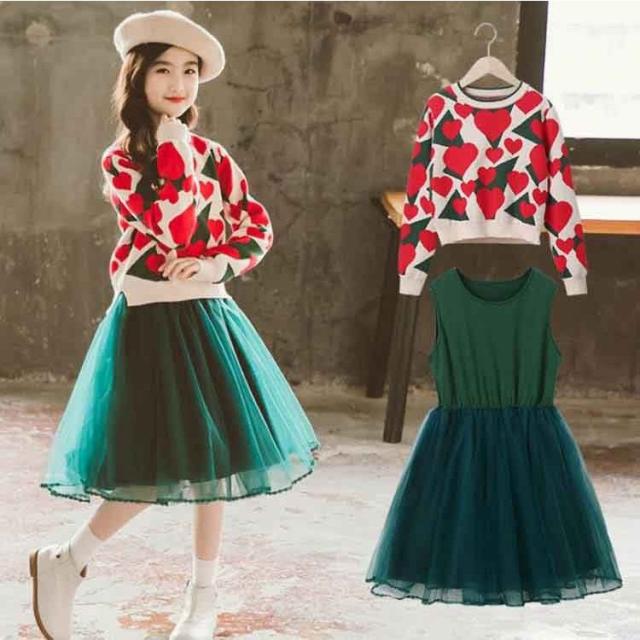 韓国子供服 セットアップ キッズ 女の子 セーター+ベストスカート 可愛い フォーマル 冬服 結婚式 入学式 卒業式 発表会 七五三 110 120 130 140 150 160