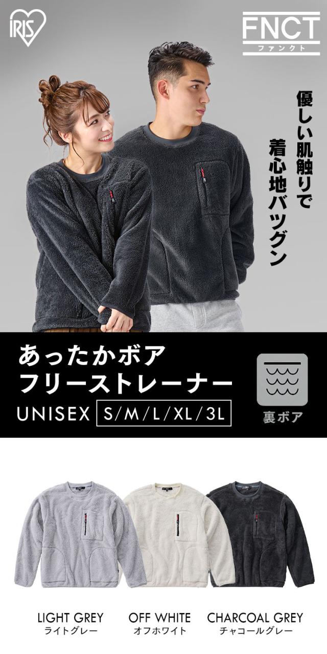 あったかボアフリーストレーナー FC21502 ライトグレー オフホワイト チャコールグレー S M L XL 3L 全15種類 トップス 長袖 トレーナー 男女兼用 ユニセックス ボア フェイクファー フリース カジュアル あたたか 秋冬 アイリスオーヤマ 送料無料