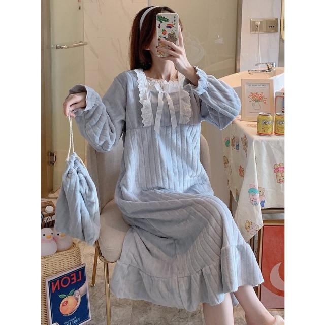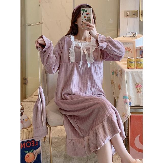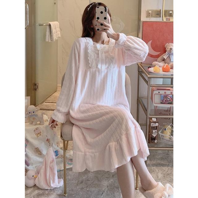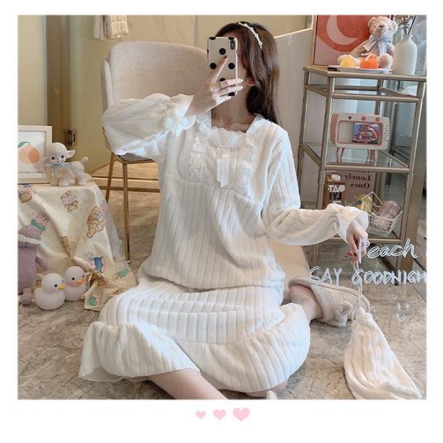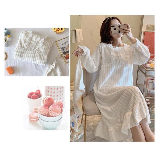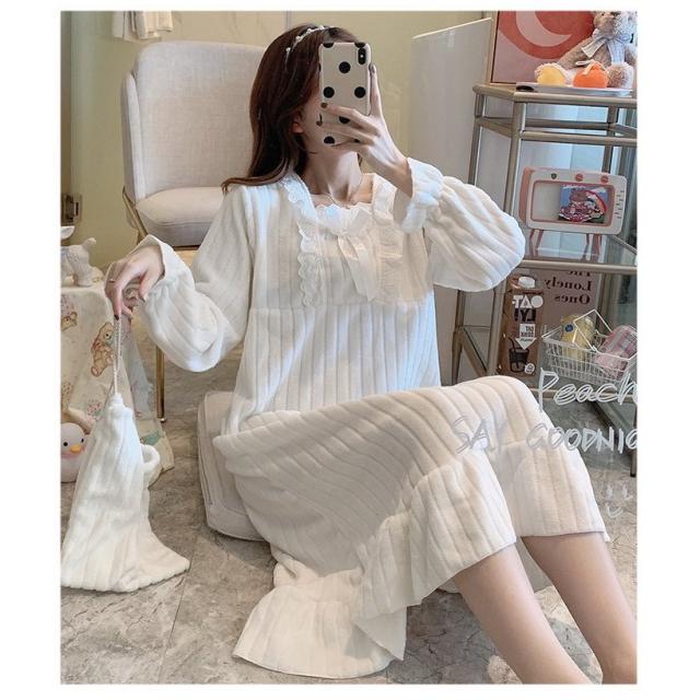新作 レディース 姫系 もこもこ ルームワンピース パジャマ マキシ丈 冬用 暖かい 防寒 ふわもこ ネグリジェ 寝巻き 部屋着