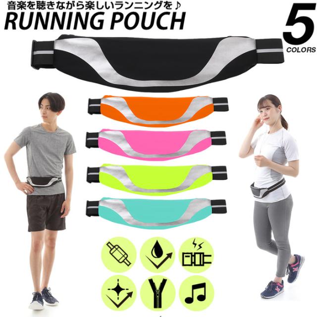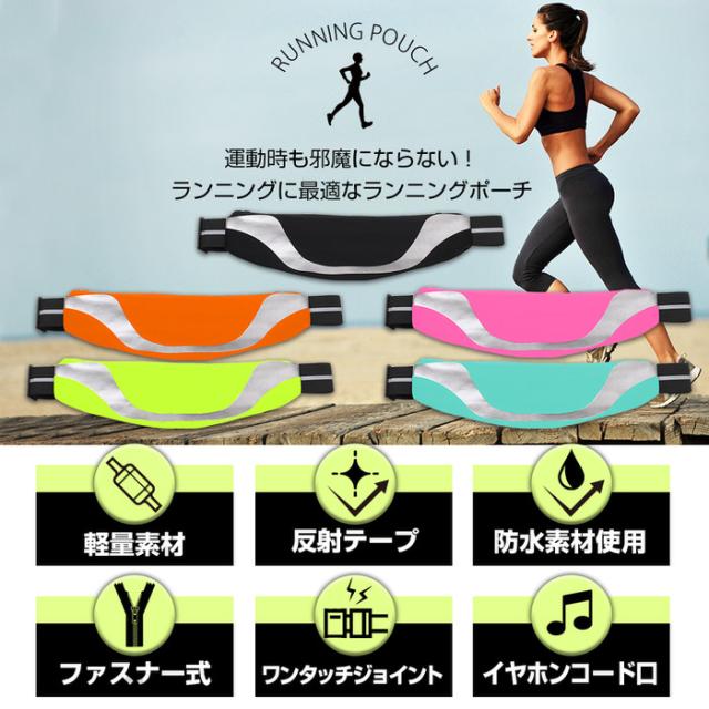 ラン ウェストポーチ 蛍光反射 | ランニング ポーチ バッグ 揺れない メンズ 防汗 反射 おすすめ 小型 軽量 スマホ 携帯 防水 ウェストポーチ 携帯ポーチ