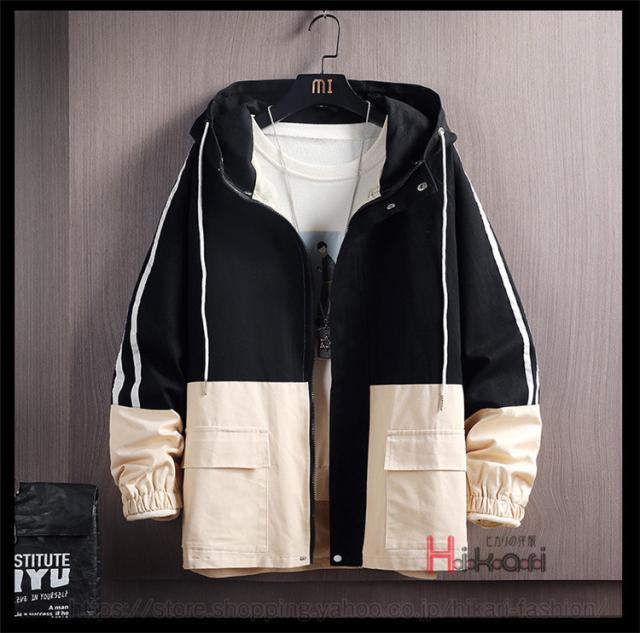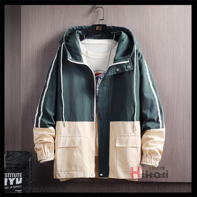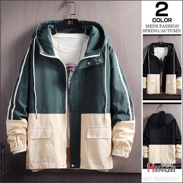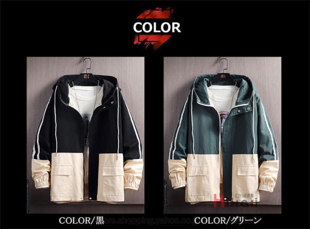 ジャケット メンズ ワークジャケット 大きいサイズ 袖ライン フード付き 配色 ブルゾン メンズジャケット