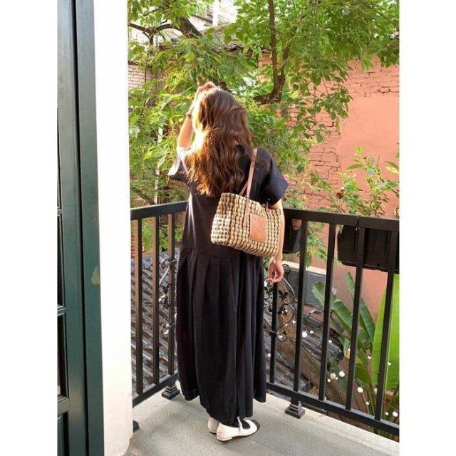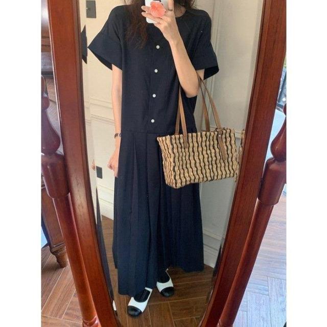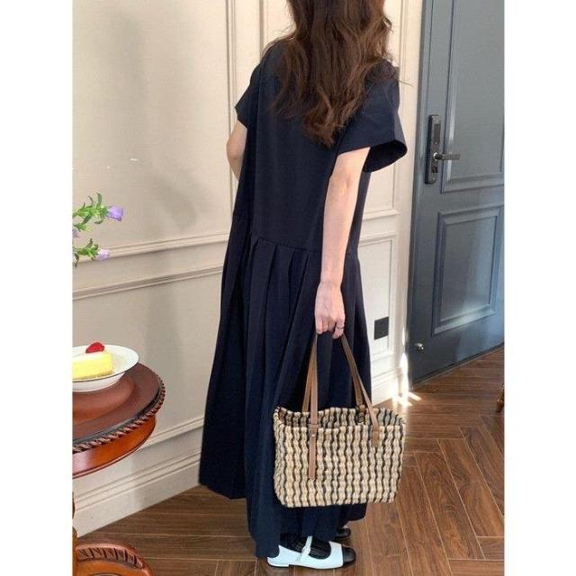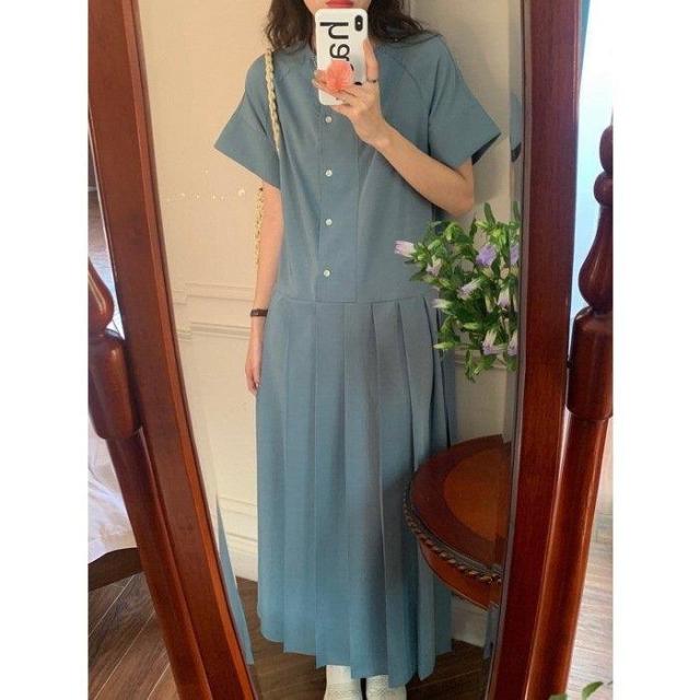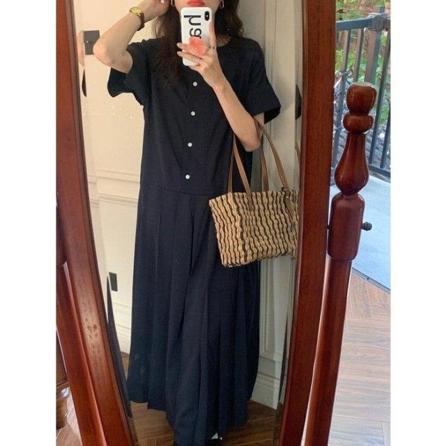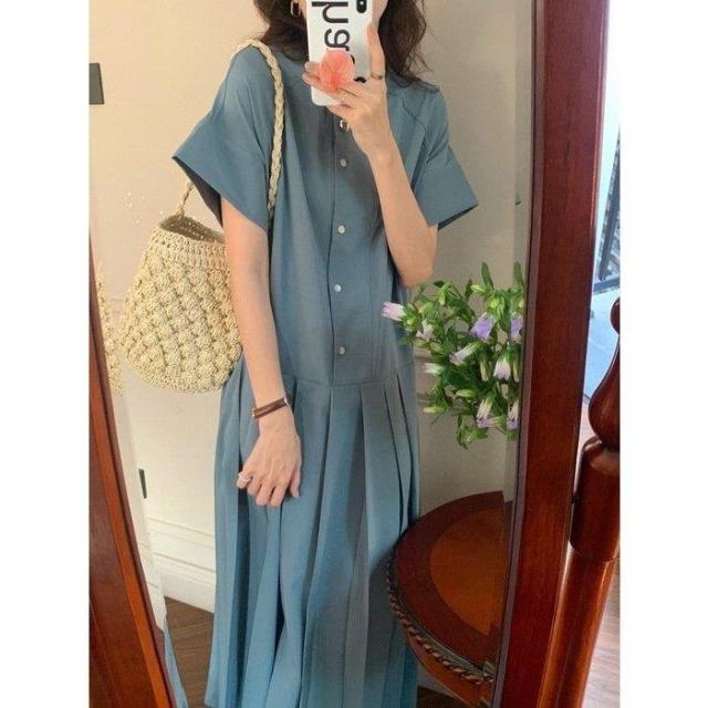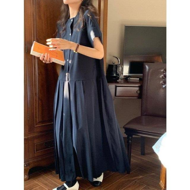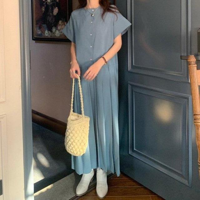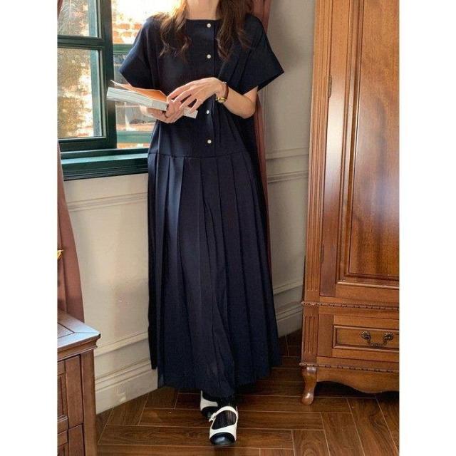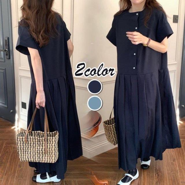 ワンピース レディース 40代 半袖ワンピース フレンチスリーブ マキシワンピース 無地 ロングプリーツスカート 春夏 通勤 OL 韓国風ワンピ オシャレゆったり