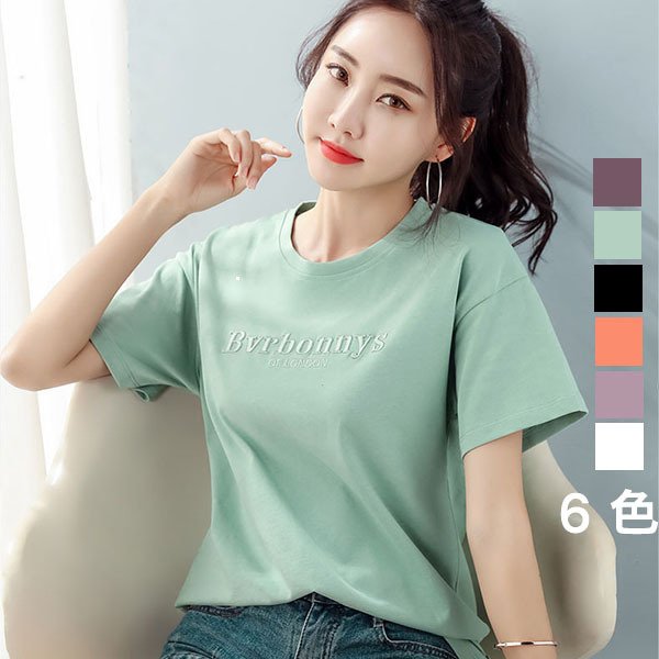 Tシャツ レディース 半袖 トップス ゆるTシャツ 白 丸首 大きいサイズ カットソー カジュアル 着痩せ 英語文字 夏 体型カバー ルームウェア シンプル 韓国